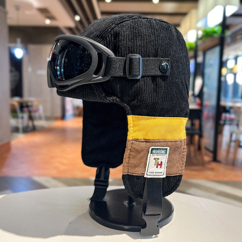 Rugged yet stylish, the Thermaro Corduroy Pilot Hat offers cozy coverage with a sporty edge. Featuring ear protection, a bell crown, and soft polyester build, this winter essential combines casual comfort with functional warmth. Includes integrated sunglasses for added versatility.